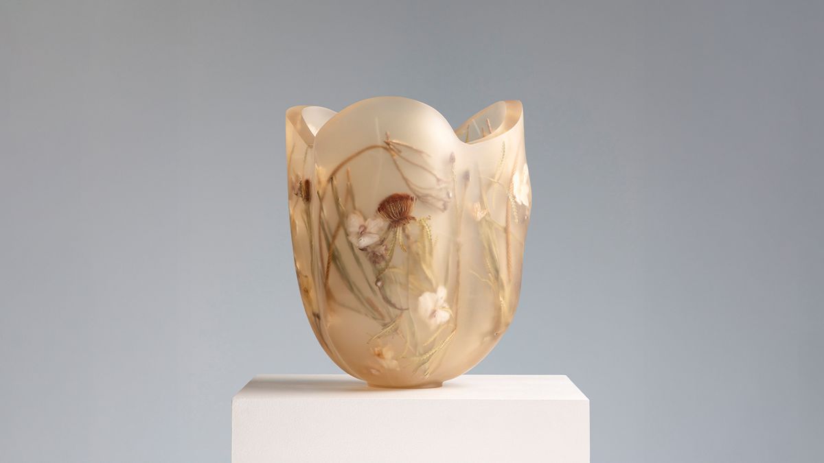 Warsaw-based Marcin Rusak’s practice centres on the transient beauty of flowers. The work Vas Florum encapsulates the designer’s sustained investigation into nature, decay, and preservation. By encasing botanical elements within resin, Rusak halts the natural life cycle of flowers, creating a vessel that exists between fragility and permanence. Rusak thus reinvents the idea of the vase – an item inextricably linked with flowers and their display – as a time capsule charged with individual and collective memories, inviting reflection on beauty, permeance, and ephemerality.
