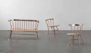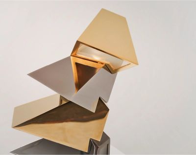 Bronze artworks take centre stage. Virgil Abloh’s cautionary Alaska series warns against the existential threat of rising sea levels, as the solid metal seats quietly disappear into the ground. These are complemented by Ingrid Donat’s Commode Galuchat and Table Basse Anneaux, two examples of her pioneering work in bronze, monumental in scale yet intricately detailed.