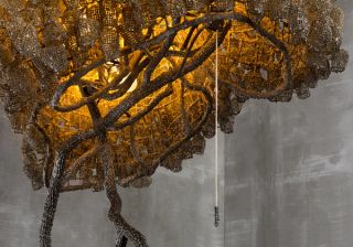 Light sculptures by DRIFT and Nacho Carbonell are displayed, following their successful exhibitions respectively in New York and Los Angeles last year. DRIFT’s Fragile Future continues Abloh’s environmental concerns, mediating on the potential symbiosis of technology and nature. The delicate dandelion sculpture is materially contrasted against Carbonell’s Stone Lamp, a hybrid concrete organism.