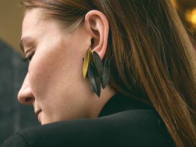Aki Cooren and her creative collaborator Arnaud Cooren present a selection of pendants, rings, earrings and bracelets that form part of the Tiss-Tiss collection, an award-winning body of work that blends metal and fabric into highly finessed artworks. Aki grew up in Tokyo and studied interior and product design at the Ècole Camond in Paris. Complementing the jewellery pieces are the patinated aluminium seat Tiss-Tiss Fauteuil Black and two lighting pieces from the Ishigaki Lamp series.
