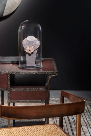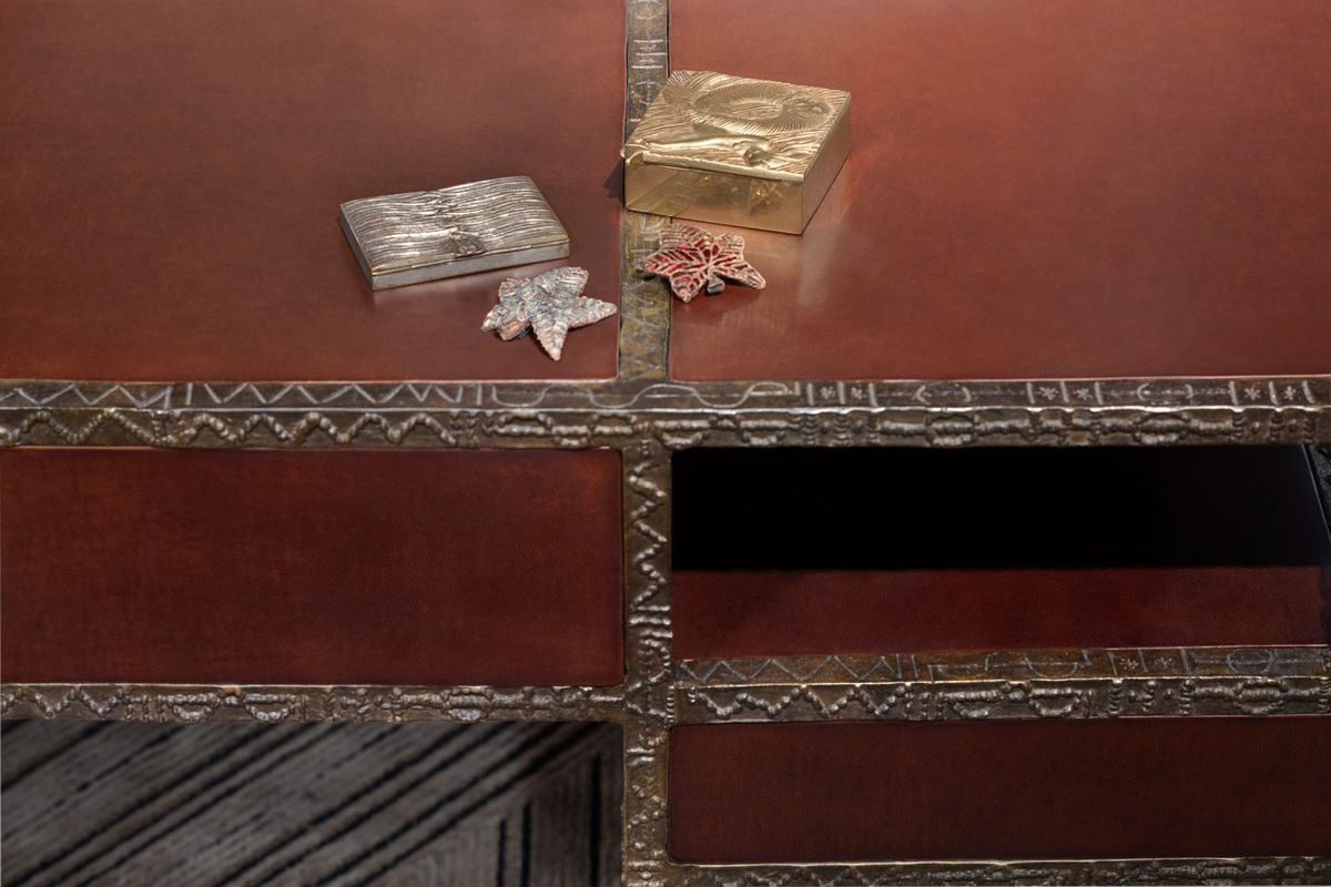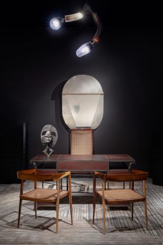 Ingrid Donat, one of the most influential living artists in the decorative arts, will exhibit four pieces at the gallery’s booth. This includes the Commode 14 Tiroirs (2022), which has been intricately crafted in parchment and patinated bronze, and the Bougeoir Ekorce Doenlles 03 (2018), a set of sculptural candle holders imprinted in her signature blend of bronze and geometric pattern making. Vincenzo De Cotiis’ VDC14_07B Déchaînements Chandelier (2014), part of his Déchaînements collection, displays a playful interpretation of light and reflection, created with delicate Murano glass and polished brass.