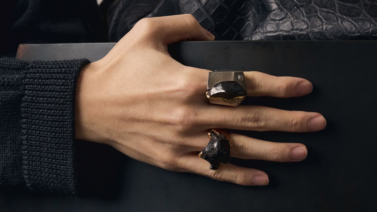 The Phobos Ring by Paris Kain and Caroline Van Hoek’s Mategoh Necklace introduce more expressive and conceptually driven approaches to adornment. Paris Kain’s practice is deeply informed by themes of transformation, mythology, and the cosmos, with the Phobos Ring evoking the enigmatic surface of its namesake celestial body. The piece captures a tension between rawness and refinement, suggesting both erosion and creation, as if shaped by forces beyond the human hand. In contrast, Caroline Van Hoek’s work is rooted in a profound engagement with traditional craftsmanship, particularly her fascination with glass and its alchemical properties. The Mategoh Necklace reflects her interest in material narratives and the passage of time, combining meticulous technique with an organic, almost geological sensibility. Together, these works highlight the diversity of contemporary jewellery practices, where personal histories, cultural references, and material explorations converge to redefine the boundaries of adornment.