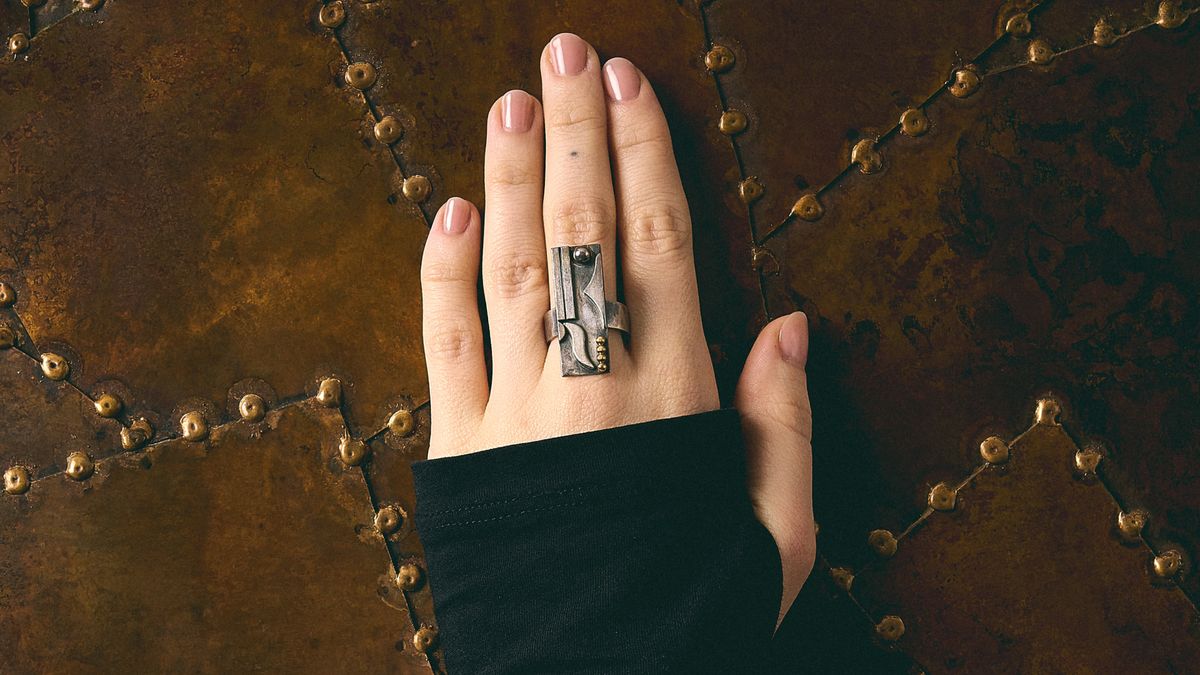The jewellery works on view articulate a refined, experimental language, shaped by the distinct philosophies of their makers. The Tiss-Tiss Earrings Square Black by Aki+Arnaud Cooren reflect the artist duo’s commitment to clarity, balance, and essential form. Drawing on principles of Japanese minimalism and French modernist design, their work seeks to distil objects to their purest expression, where proportion, lightness, and precision become central. The Tiss-Tiss series evokes methods of weaving, translating textile sensibilities into metal with a quiet rigour that emphasises both fragility and strength. In dialogue with this refined restraint, the Ring Rectangulaire by Jean Després embodies a radically different, yet equally influential, modernist vision. Rooted in the industrial aesthetic of early 20th-century France, Després drew inspiration from machinery, architecture, and the burgeoning machine age, creating jewellery that rejects ornament in favour of bold geometry and material honesty. His work remains emblematic of an era in which jewellery became a site for avant-garde experimentation and architectural thinking.