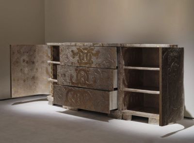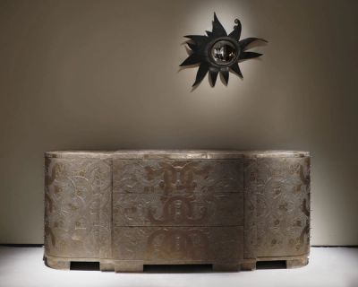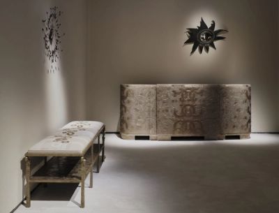 Donat presents a unique insight into the breadth of her own work in bronze, displaying pieces from monumental cabinets to mirrors and objets d’art. Donat’s bronzes are immediately recognizable by the intricate patterns that cover their surfaces, but her artworks express a totality that is evidence of her original development as a sculptor in the company of Sylva Bernt and Diego Giacometti. Only since 2005 has Donat concentrated on abstract iconographies, expressing a universal language on the skin of her artworks as a fundamental link between language, geometry, and material. Her artworks now bear witness to a limitless gesture, spread across her rich and complex oeuvre.