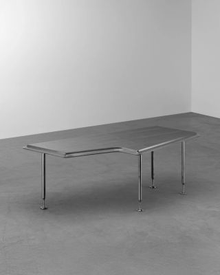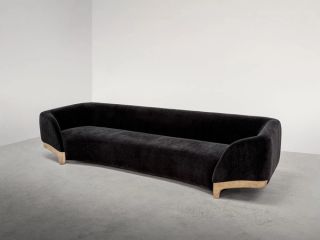 Vincenzo De Cotiis’ DC1920 Coffee Table (2019) and DC1626B Sofa Black Mohair L330 (2016) organically blend past and present. The artist invites signs of age and use; accepting the perfectly imperfect, he refers to his works as living pieces—timeless studies of the patina of life. The DC1920 Coffee Table features fiberglass and cast brass that merge into a sleek architectural geometry, while the DC1626B Sofa Black Mohair L330 underscores De Cotiis’s focus on the interplay of texture. The works highlight the binaries inherent in the artist’s practice, mixing new and reclaimed materials; refined and industrial sensibilities; and polished and raw finishes.
