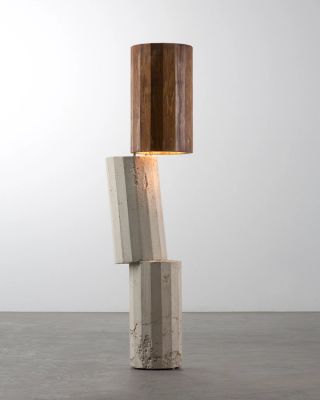 Through their minimalist Japanese-French aesthetic, Aki+Arnaud Cooren integrate subtle references to nature into everyday objects. Ishigaki Lamp, which won a Créateurs Design Award in 2025, is inspired by freediving on Japan’s south coast. The light is projected upwards, producing a mesmerising shadow on the ceiling, representing sunlight on the ocean’s surface as viewed from underwater. The dappled combination of colour and material creates an abstract intersection of fabric, liquid and light.