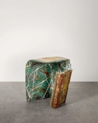 Vincenzo De Cotiis works at the cusp between art and architecture, creating a universe fuelled by parallelisms of space and time. DC2211 Side Table features a sculptural blend of fiberglass and malachite, a pairing that sees robust materiality merge with the aesthetics often found in contemporary cities. Seamlessly integrating heritage and modernity, the work’s distinctive form is reminiscent of ancient inspirations, elevated by its lustrous surfaces and its sleek lines.
