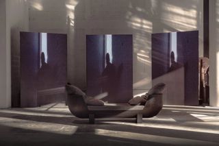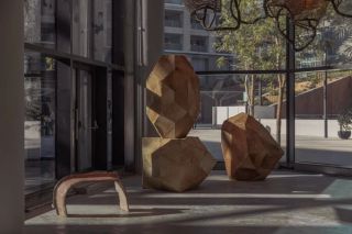 As we move in to “The Darkness”, Lamy invites the viewer to a refined and mysterious space, where beguiling forms take shape in the depths, rooted primarily in the work of Rick Owens Furniture. Meanwhile, the tigre pattern across Rick Owen’s Gallic Chair evokes alternating shadows that ground the artist’s practice in the rich materials of stone and wood.