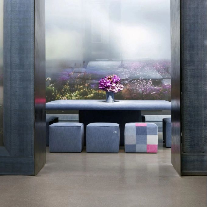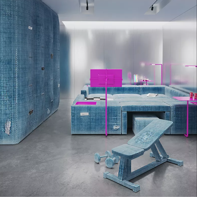 In a world oversaturated with objects, data and ideas, Nuriev’s concept of transformism emerges as a way of rethinking and reshaping what we have overdone. It focuses on turning something into something else, not by erasing its origin, but by amplifying its essence – a process of giving a second life to objects, creating meaning from what is overlooked and questioning contemporary ideas of beauty. The philosophy is evident in Nuriev’s collection of functional sculptures upholstered in denim, producing hybrid objects and spaces that reinvent the iconic and ubiquitous fabric. For Nuriev, transformism is an act of care and reflection in a world that no longer needs more things – an approach that is both radical and fun.