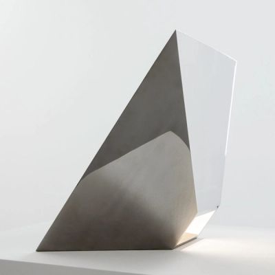 Grawunder was drawn to the medium of light early in her career, always aiming to incorporate architectural principles, non-precious building materials and high-technology light research into her designs. She often uses energy-efficient mass production materials, such as polished stainless steel, steel cables, painted metal and coloured acrylic, aiming to reveal the beauty of these basic materials through light, shape and colour. Works like Four Square (2018), Circuit A (2018) and GoldBar (2013) illustrate how the artist pairs her modernist aesthetic with simple production and energy efficiency to redefine luxury in the present age.