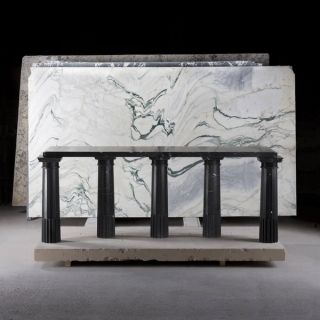 Lagerfeld’s Architectures series for Carpenters Workshop Gallery, completed in collaboration with architect Aline Asmar d’Amman, was the only collection of sculptural works he presented across his myriad career. In this show evoked a contemporary architectural landscape with Greek origins, the unique pieces combining the precision of canonical proportions born from the use of the golden ratio and the most noble material, marble.