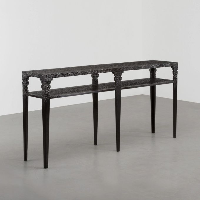 Baas has achieved international acclaim for a practice that blends theatrical flair and conceptual rigour with a commitment to craftsmanship. Drawing on his graduate research into beauty and imperfection, the artist created his breakthrough work Smoke, in which he charred furniture and preserved it in resin – an experiment with nature and transformation. His Clay series embodies artistic vulnerability, with every piece handmade. Today, Baas is best known for his Real Time series, comprising 12-hour films of performances marking the passing of time, merging theatre, art, film, and design.