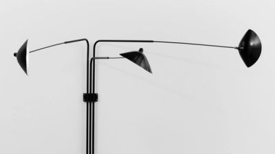 Throughout the 1950s, Mouille designed a series of angular, insect-like wall-mounted and standing lamps and smaller, more curved wall sconces. His works are characterised by their sculptural aesthetic by eschewing the complexity of Italian models, which were becoming popular in the market during the 1950s.