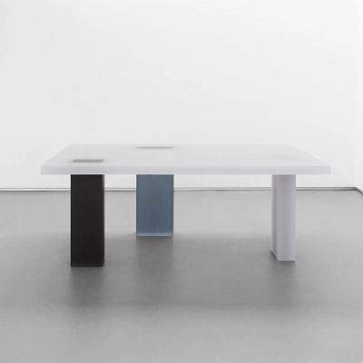 In the painting process, Park begins by mixing primary pigments to create an envisioned colour. The pigments are added to moulds of the resin sections, and a muted colouration is obtained within the slabs to maintain their translucency - an element that allows the colours to engage each other in the joints of the structures he creates. Park’s designs sit on the axis between minimal and practical but always contain an element of dissonance that creates a sense of balance and tension within the work. His furniture takes the shape of a sculpture which demands to be visually appreciated, and his designs are considered practical commodities as well as fine art.