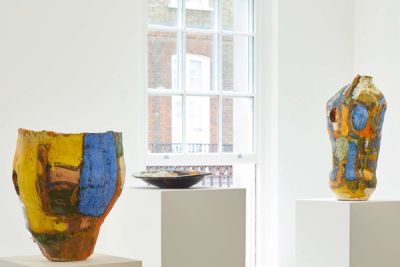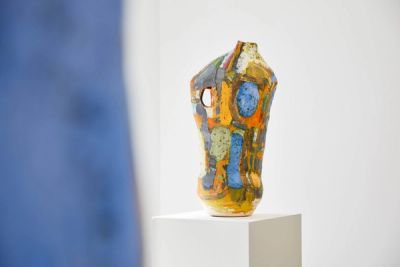 Unmistakable but uncomfortably situated, neither fully in, nor out of painting or ceramics or even sculpture, and; not even bothering with such self-situating.'