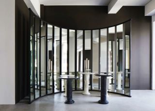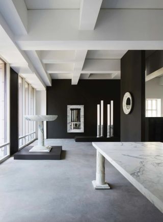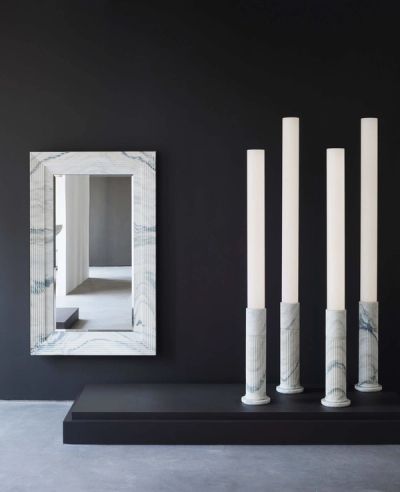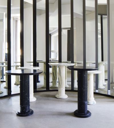 Evoking a contemporary architectural landscape with Greek origins, the unique pieces combine the precision of canonical proportions born from the use of the golden ratio and the most noble material, marble. The ensemble of gueridons, tables, lamps, consoles, fountains and mirrors materialize the perfect balance of classical foundations with a contemporary perspective, like a modern mythology.