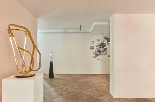Continuing her family’s design legacy is Victoria Wilmotte, whose “Golden Gate Table Lamp” will be on view. In combining natural materials like lava stone with industrial mediums, the new designer to Carpenters Workshop Gallery presents a fresh take on light installation.