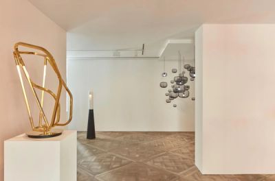 Equally adventurous in their self-proclaimed “New Gothic” aesthetic is Belgian-Dutch design duo Studio Job, whose “Pharmacy Lamp,” “Pumpkin Lamp,” and “Tiffany Tree Lamp,” will demonstrate the designers’ fearless and original take on collectible design.