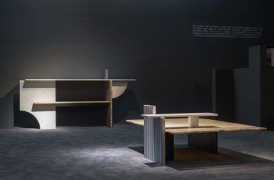 The materials chosen are architectural, using a combination of marble and aluminium honeycomb. The strong contrast between these two materials conveys the natural beauty within the pieces against the harsher industrial elements, in tandem with the idea of luxury versus utility.