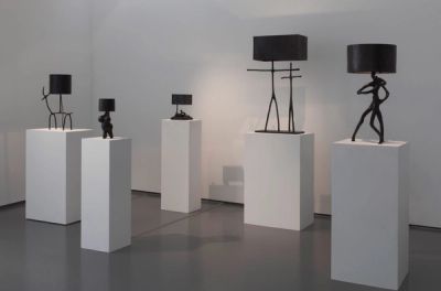 Using these hand-made recycling machines, van Lieshout created works such as Hydroform and Crash Cabinet, are intended as a test for apparently indestructible objects. Everyday items such as gas canisters and fire extinguishers were pitted against the power of hydraulic cylinders, drop hammers, and other self-built machines, a merciless struggle that reveals vulnerability. Simultaneously, sculptures like the Walking Sticks and Venus Lamp reflect society’s renewed interest in divergent political movements, our ongoing search for new leaders and visionaries who incite the masses and lead the way into the future.
