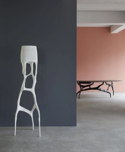 Fuse features five new works executed in resin and Hotavlje stone mined from Slovenia and a selection of twelve recent pieces never-before-exhibited in the US. While the pieces are conceived in Trevelyan’s London-based studio, they are created and finished by the designer at Carpenters Workshop Gallery’s Roissy workshop in France.
