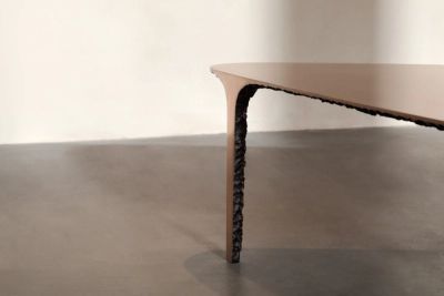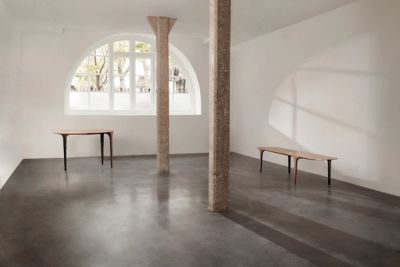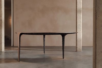 ‘An essay in material amplitude, formal restraint, and sculptural utility, the Monoforms series champions elemental purity within a cohesive line of eight bronze cast signature pieces. Each presenting a geometrically fluid version of archetypal furniture staples, the collection pulls focus back to the properties of its material, its textural variances, capabilities, surface character, and dexterity.’