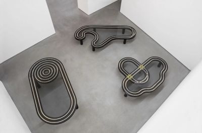 Reconfiguring toys and games provides the basis for an exploration of how playing is an integral part of the creative process. Three tables set the scene for the comeback of the Scalextric slot-car game and rocking horses race around an imaginary merry-go-round. Older pieces, “Tide” (2004), “Aladdin” (2006), “Barnacle” (2009), “Raft” (2009), “Lighthouse” (2009), “Wing Mirror Table” (2009) punctuate the exhibition. Their presentation speaks to their timelessness.