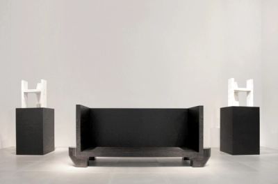 Rick Owens’ designs evoke original furniture through archetypes. There are a number of typologies: the ceremonial chair Curial, the Trident chair and its structure, the armchair from a chest Halfbox, the RomanDaybed, the private resting space of the Boudeuse couch; he reintroduces the Screen that becomes an alcove, wall or sculpture in addition to the big dining table Plug Table.
