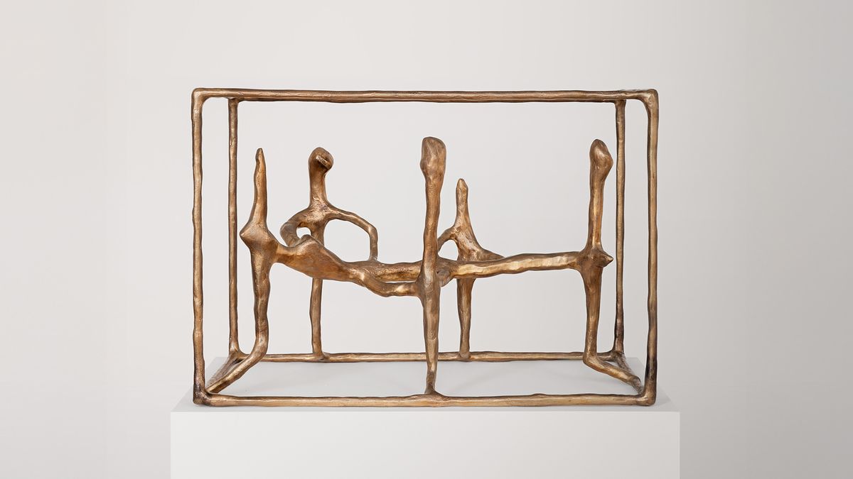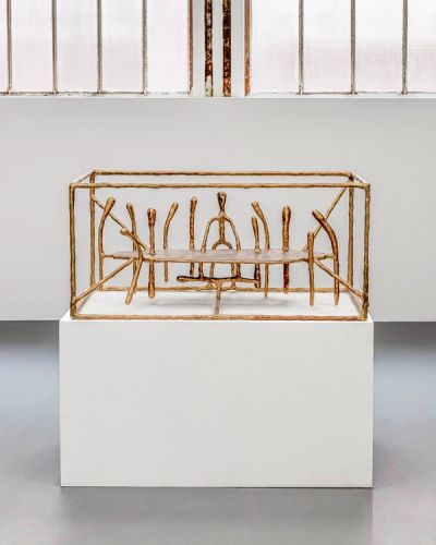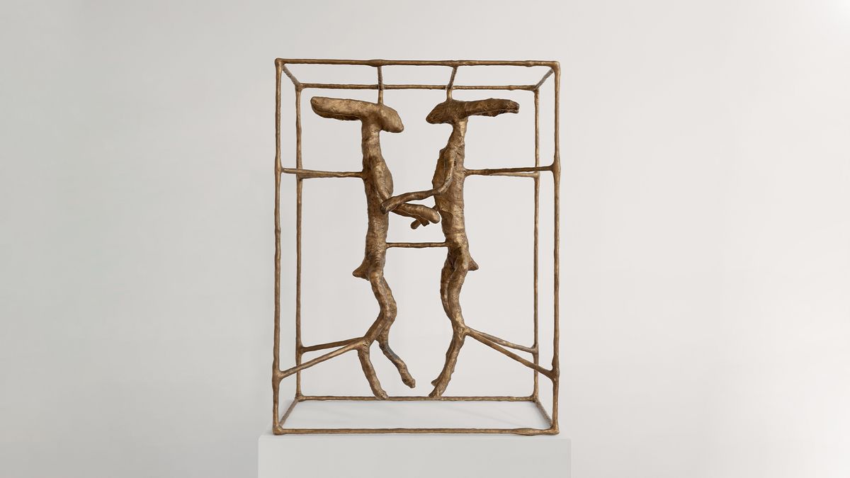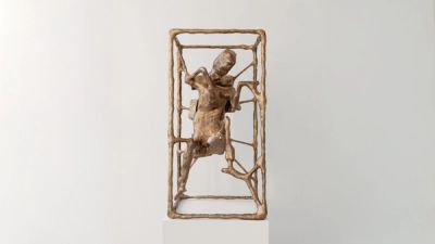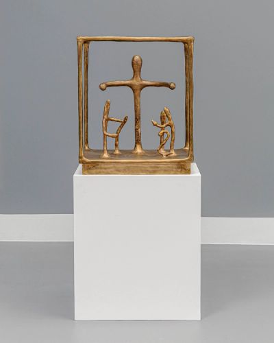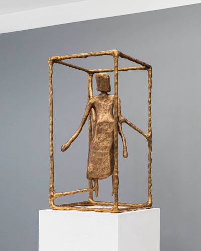The exhibition depicts a series of figures held within cage-like frames. These frames represent the limits, laws, and social rules that shape our societies, standing in tension with the individual longing of the figures for autonomy, growth, and a simpler way of being. At once protective and restrictive, the paradox of these frames lies in humanity’s urge to improve and control life, while making it increasingly complex to navigate the experiences that define existence: togetherness, freedom and love.