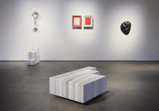 Both Artschwager and Stadler are known for making objects that dissolve the traditional distinctions between art and design, punctuating space both literally and figuratively. Among the iconic works by Artschwager featured in START! are Apostrophe (1966), Exclamation Point (Wood) (1970), and Leaning Chair (2010), all of which were selected for their engagement with spatial and functional dynamics. Artschwager thrived on crossing boundaries between genres and media, communicating the strangeness of everyday objects while foregrounding the workings of human perception. Significantly, he also applied an artisanal sensibility to synthetic materials such as Formica and Celotex.