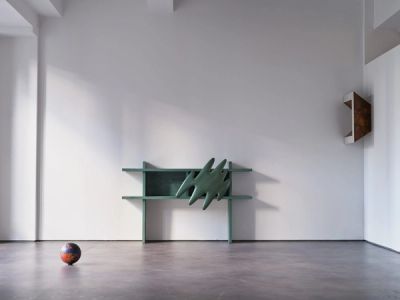 Both Artschwager and Stadler are known for making objects that dissolve the traditional distinctions between art and design, punctuating space both literally and figuratively. Among the iconic works by Artschwager featured in START! are Apostrophe (1966), Exclamation Point (Wood) (1970), and Leaning Chair (2010), all of which were selected for their engagement with spatial and functional dynamics. Artschwager thrived on crossing boundaries between genres and media, communicating the strangeness of everyday objects while foregrounding the workings of human perception. Significantly, he also applied an artisanal sensibility to synthetic materials such as Formica and Celotex.