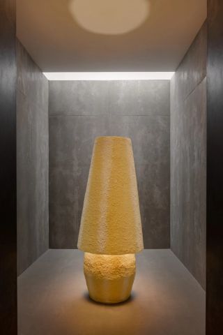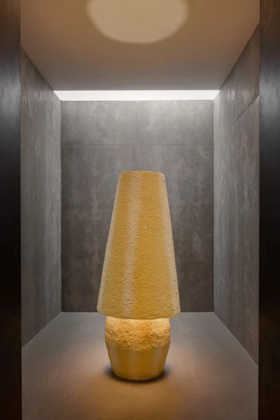 As part of Mestres’ other new series, the floor lamp Dixie features a rough, textured surface painted to create a gradient colour effect of yellow and white. The work reflects how the artist designs colourful objects that are intentionally bright and breezy, as a reflection of her own personality.