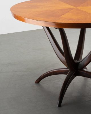 Joaquim Tenreiro (1906-1992) is often referred to as the father of Brazilian modernism. The furniture designer was born in Portugal and moved to Rio de Janeiro in the late 1920s. In 1941, he received a commission to create furniture for a home designed by Oscar Niemeyer for the writer Francisco Inácio Peixoto. He designed modern furniture that fit the Brazilian style of life, often using native woods. He continued designing furniture until the late 1960s, when he then devoted himself to painting and sculpture.