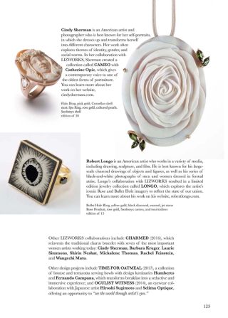 "Liz Swig’s LIZWORKS collaboration with contemporary artists to create limited edition pieces that push the boundary between jewelry and art is truly fascinating."
