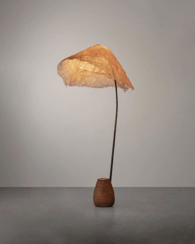 Carpenters Workshop Gallery’s booth at Design Miami 2024 features a curated selection of contemporary works that blend art, design, and craftsmanship by notable artists including Vincenzo De Cotiis, Aki & Arnaud Cooren, Ingrid Donat, DRIFT, Kendell Geers, Steven Haulenbeek, Roger Herman, Pierre Jeanneret, Marcin Rusak, and Yinka Shonibare. A highlight is Yinka Shonibare’s Windy Chair, a limited-edition series that explores themes of migration, cultural exchange, and the fluidity of identity through dynamic Dutch wax-print fabrics. The display also includes Vincenzo De Cotiis’s DC2337B Cabinet, which fuses silver, glass, and hand-painted fiberglass, and Ingrid Donat’s Table de Salle à Manger Facettes GM A, which features scarification-inspired patterns.