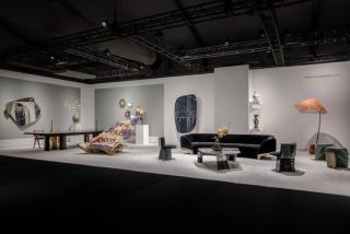 Carpenters Workshop Gallery features a blustery chair by the British artist Yinka Shonibare, whose sculptural work uses traditional African textile patterning to comment on the legacy of colonialism in the UK and beyond. Windy Chair sports a unique Dutch Wax-inspired print.