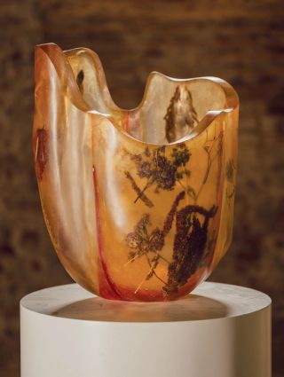 Rusak; whose latest works will be exhibited at Carpenters Workshop Gallery, west London, next month, has developed a technique that enables him to suspend flowers and plants in resin. His vessels, furniture and sculptures are charged with a haunting, ethereal aesthetic, and a sense of the ephemeral nature of beauty.