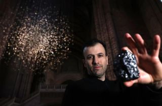 Spanning six metres in diameter, the artwork is made up of over half a tonne of coal - it is a visual representation of how much power it takes to keep a single 200W light bulb switched on for a year.