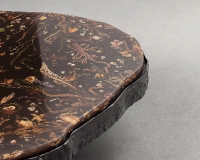 Designer Marcin Rusak referenced the landscapes of his native Poland in a series of tables and vases, which are made from his signature combination of flowers suspended in resin.