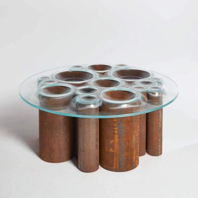 Designer Marcin Rusak referenced the landscapes of his native Poland in a series of tables and vases, which are made from his signature combination of flowers...