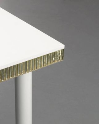 At the end of 2021, Sotheby's France auctioned the private collection of Karl Lagerfeld , two years after the death of the German fashion designer. Among the approximately 1,200 lots put up for sale were many pieces signed Martin Szekely, a renowned designer who was particularly fond of the famous artistic director of Chanel. The Carpenters Workshop Gallery , which acquired some of them on this exceptional occasion, presents precisely at the PADtwo tables (one rectangular, the other round) as well as two identical shelves by the French designer, dated from the end of the 2000s and restored. Furniture in light and smooth aluminum with an infinitely worked structure of which Martin Szekely reveals a precious interior, made of glass or honeycomb.