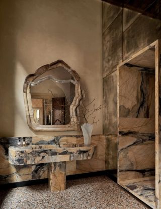 “We were inspired by Venice—the architecture, the history, the monumentality,” says AD100 designer Vincenzo De Cotiis over Zoom, swinging open the shutters of the Palazzo Giustinian Lolin, a Baroque-style palace in the city where he has recently taken up residence on the piano nobile. It’s a misty afternoon in February and a few small boats are traveling along the waterway that has facilitated trade, transit, and cultural exchange for centuries. “When you’re here, you understand what happened in the 15th century,” continues the designer’s wife, Claudia Rose De Cotiis. “How Venice became a world market.”