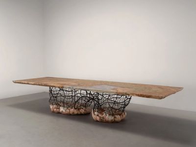 Enter the halls of Design Miami and you will find tables built from organic matter and building detritus, dancing on ill-matched legs; a chair that looks like a giant ant; a series of ceramic tables like upside down mountains and a multicoloured shelving unit constructed from melted carpet. This has always been the fair where design explores its wildest edges. But today perhaps more than ever, it seems there is a growing public for these fantasies.