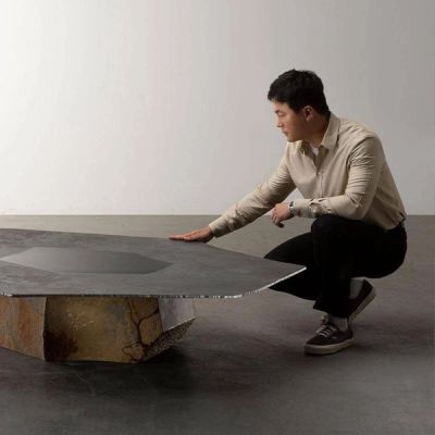 Wonmin Park coaxes volcanic stone and steel into organic furniture forms