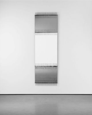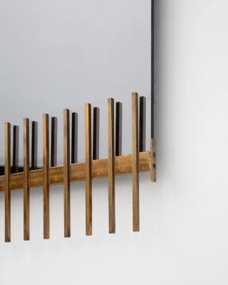 After discovering product design in the agency of George Nelson (lead designer for the Herman Miller furniture company) in the United States, Ettore Sottsass came back to Italy where he participated in post-war reconstruction while becoming an artistic consultant for Poltronova and Olivetti. He created playful and innovative designs in new materials such as fiberglass. In 1957, he designed this wall mirror, manufactured by Santambrogio and De Berti. The mirror presents a unique form and combination of coloured glass and reflective surfaces. Between poetry and exuberance, Sottsass' work is at the frontier between art and design.