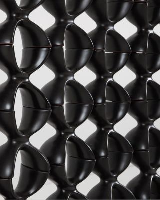 Eva Zeisel was a Hungarian-born American designer, whose playful yet practical ceramic designs were at the forefront of a shift away from the more formal style popularized by the Bauhaus. These room dividers, composed of removable and individual ceramics echo her inspirations: organic forms, nature and her own relationships. Zeisel referred to her groupings of designs as “families,” with pieces often nesting into one another.